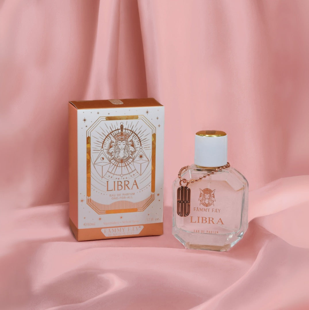 Libra is a balanced and harmonious fragrance that captures the essence of the star's elegance and poise. Inspired by the astrological sign of scales, it is known for seeking equilibrium and valuing beauty which symbolizes grace, charm, and a magnetic social spirit. A fragrance that could embody the quality of justice, presenting a scent that strikes a perfect fairness between sweetness and sophistication. This fragrance reflects Libra’s essence with a sweet, alluring scent profile - a blend of delicate fruits and florals, enriched with notes of syrupy caramelised woody undertones. It is a fragrance that captures warmth and sophistication, designed to leave a gentle yet memorable trail, like a Libra’s warm, captivating presence.