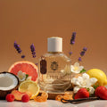 The top notes burst forth with the tantalizing essence of Coconut, Grapefruit, Peach, Raspberry, Sicilian Lemon, and Strawberry, creating a fruity and refreshing melody. As the scent unfolds, a floral harmony emerges with Lavender, Jasmine, and Gardenia gracefully interweaving with the earthy allure of Patchouli at its heart. The fragrance evolves into a warm and sensual composition with the richness of Ambroxan and Caramel, accented by the woody notes of Pine and a lingering embrace of Vanilla and White Musk, to complete this olfactory masterpiece, leaving a trail of elegance, depth, and sweet nostalgia.